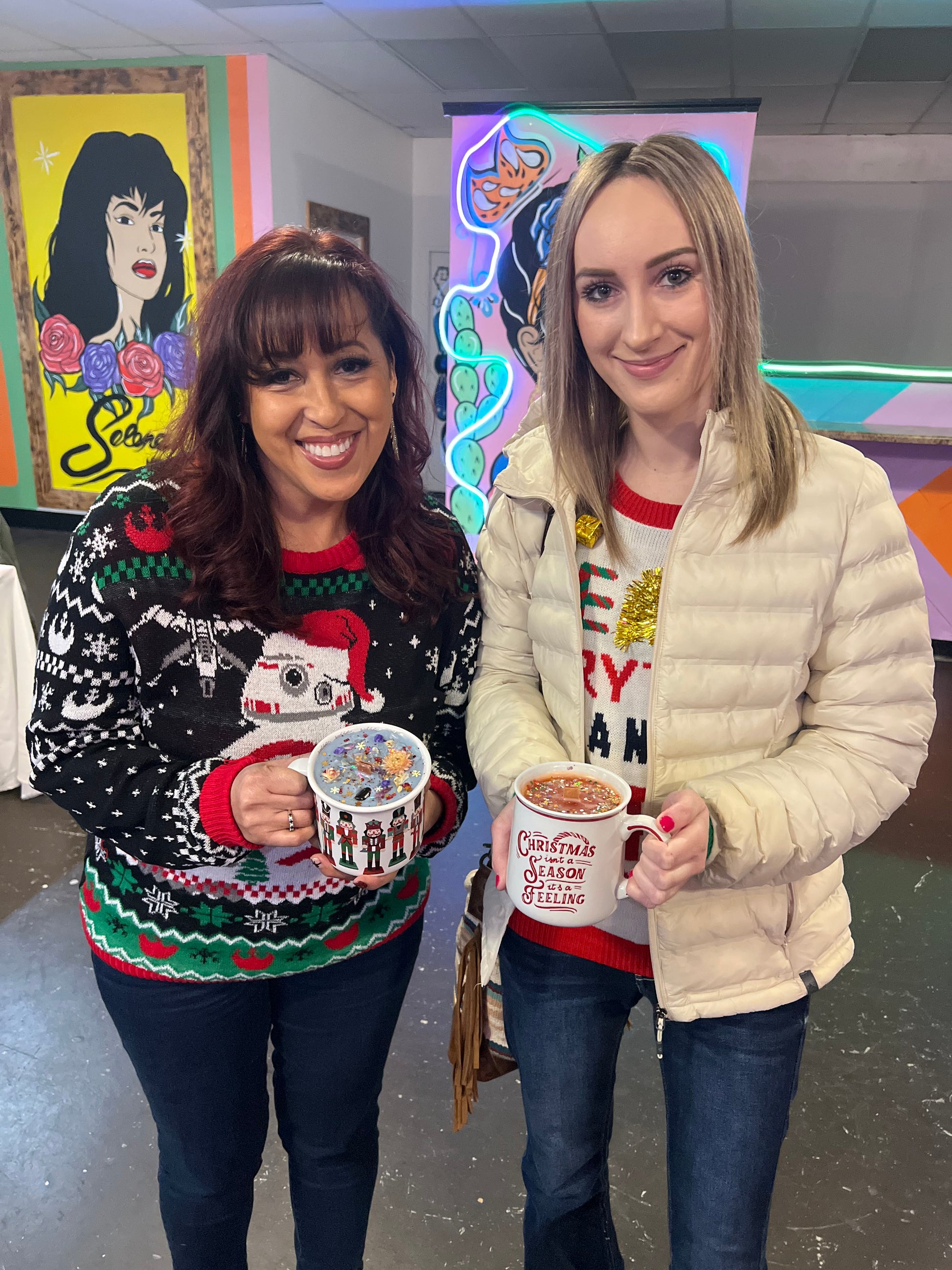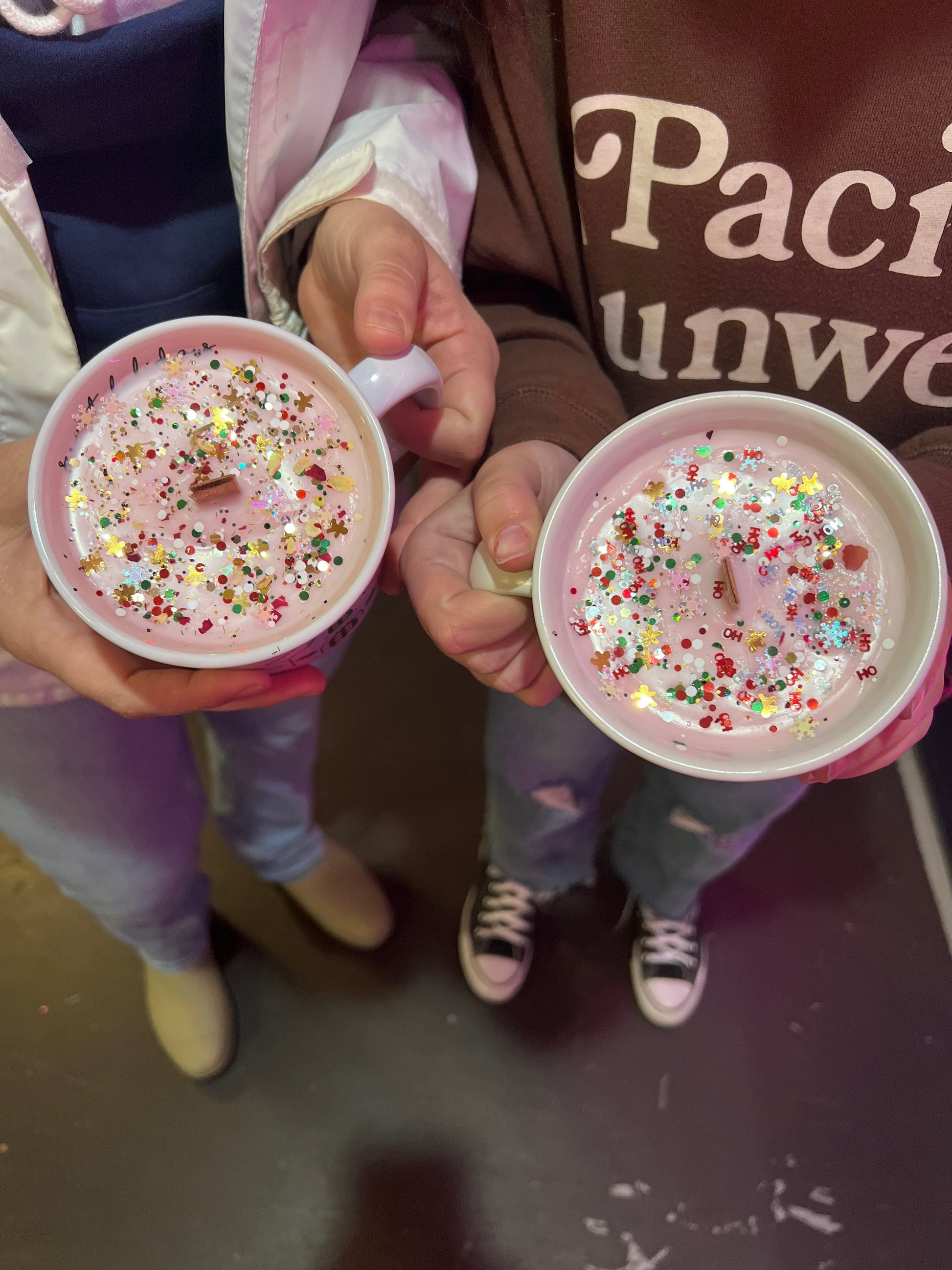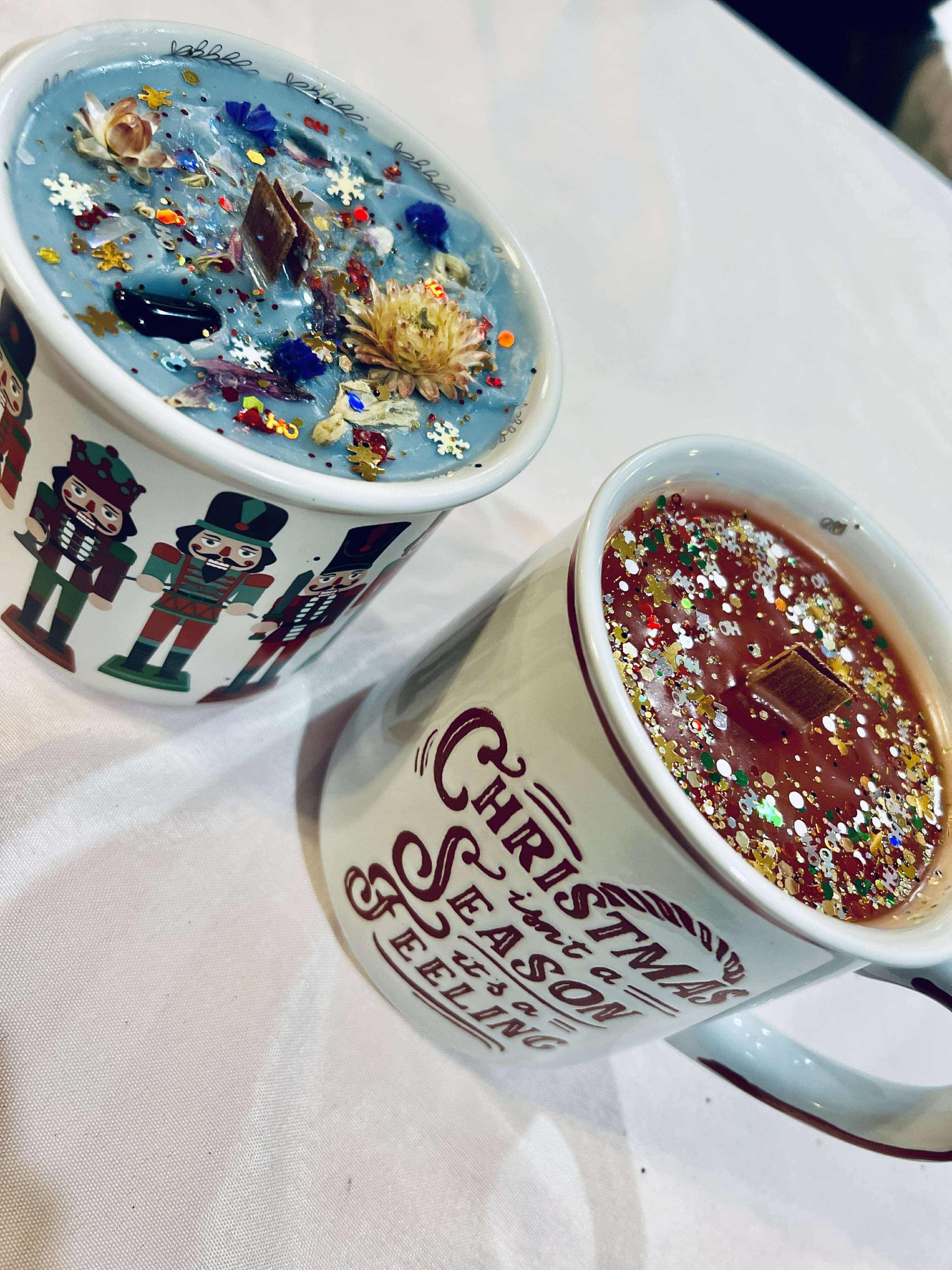 You will get your choice of a Christmas mug, scents, wax color, and accessories.